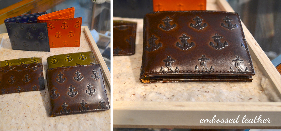 Another stylish and functional Jack Spade product is the Anchor Bill Holder. Embossed cowhide leather is complemented by a vintage sailor print lining (which I unfortunately didn’t think to get a photo of). Personally I love the traditional brown leather, but the colors are fun too.