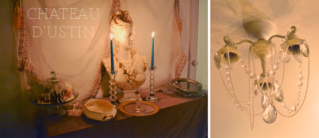 Chateau D'ustinEven lighting fixtures got an upgrade with the addition of draped chandelier crystals. To keep costs for the party low, Dustin got creative with the decor and hand made many of the decorative touches himself, incorporating elements that already existed in the apartment.