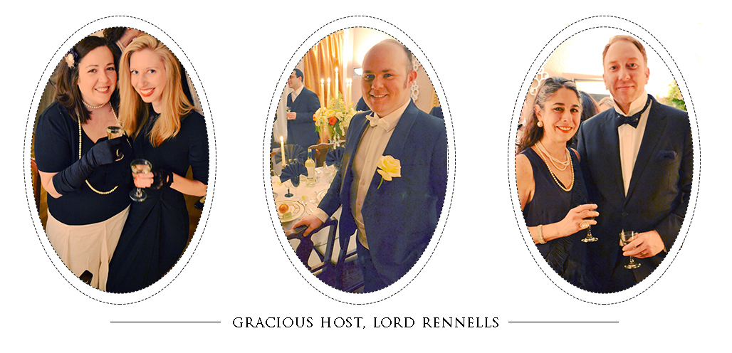 Guests were encouraged to dress in white tie attire of the period. Everyone looked fantastic and it was fun to be in character as “lords and ladies.” Ladies wore strands of pearls, gloves and lipstick and the men wore bow ties and cumber buns. Dustin looked especially dapper in a white bow tie.