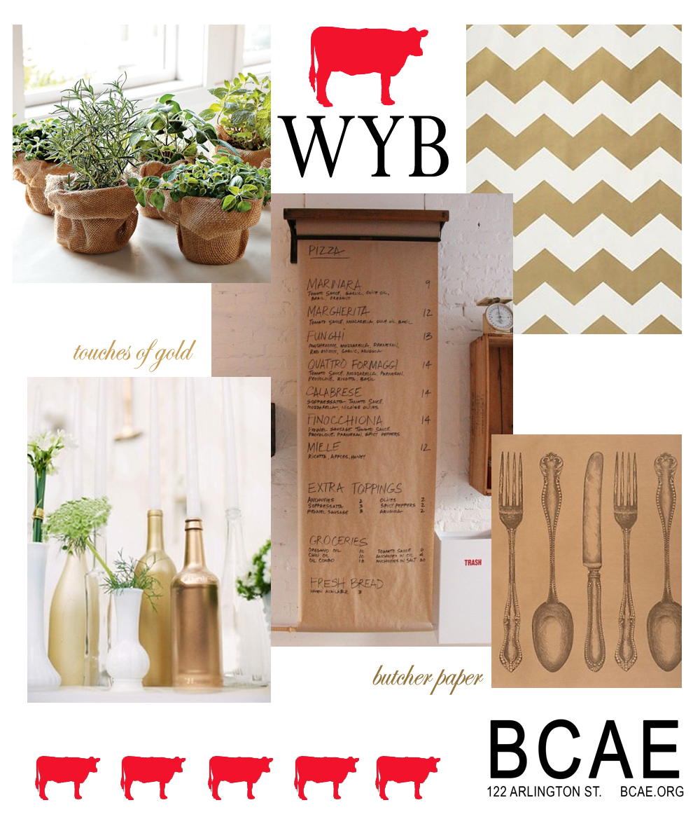 Without giving too much away, I wanted to share some of the images that have been inspiring me for What’s Your Beef, the BCAE’s Second Annual Fundraiser. I’m shaking up the decor a bit this year with a slightly more sophisticated color scheme. There will still be pops of red, but also some touches of black and gold.