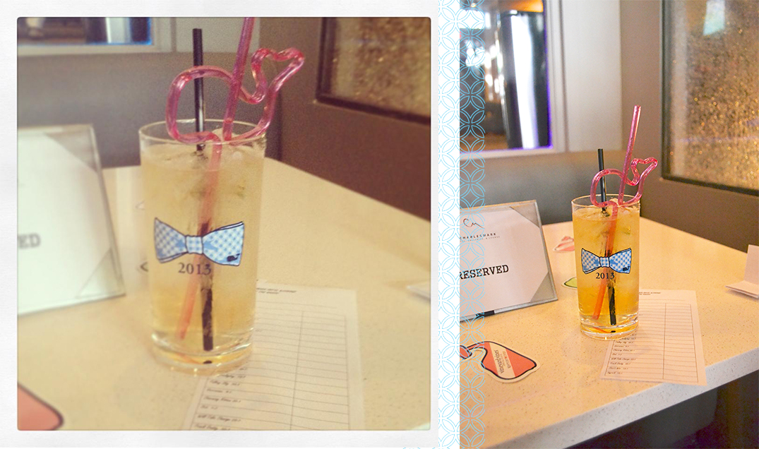 Vineyard Vines provided swag for the party including the julep drink glasses. I love the little blue bow ties on the cups and how cute are the pink whale straws!?