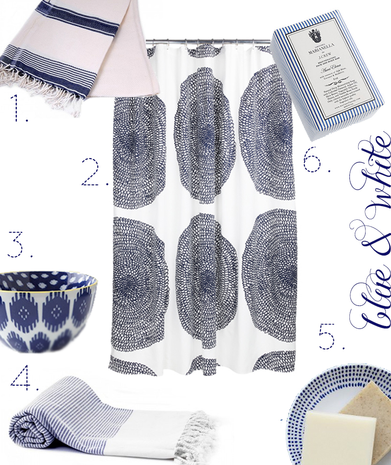 Each day the little blue and white striped packaging grows on me more and more. The color combo is so refreshing and became the theme for this style board. It’s amazing how the addition of blue and white, especially stripes, immediately makes the space feel cleaner and more organized. When we move from an apartment into a house the bathroom will most definitely be decked out in blue & white!