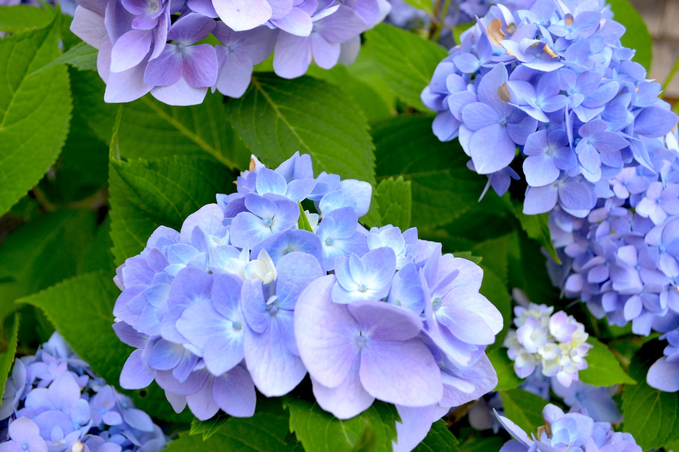 Just when I start to feel down that the peonies have passed, the hydrangea bushes burst into bloom. It seems appropriate that they’re at they’re most vibrant during the Fourth of July holiday. In my parents’ yard there are 3 bushes in purples and blues surrounding our patio and a bright pink plant out in the garden. It won’t be long until they fade in the summer heat, so enjoy them while they’re here!