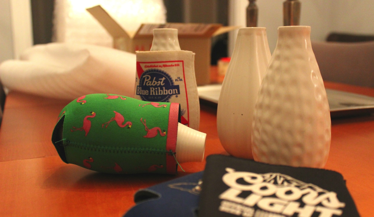 Be creative with packing materials: use towels, table cloths, pillow cases and socks to wrap glassware. Beer cozies fit more than beer. Pillows cushion punch bowls nicely. You’ll most certainly need some amount of newspaper and bubble wrap, but you’ll be moving your soft goods no matter what; they might as well be utilized. Similarly, use your luggage, use your shoe boxes, use your cooler — anything that holds things that’s going with you should be used!